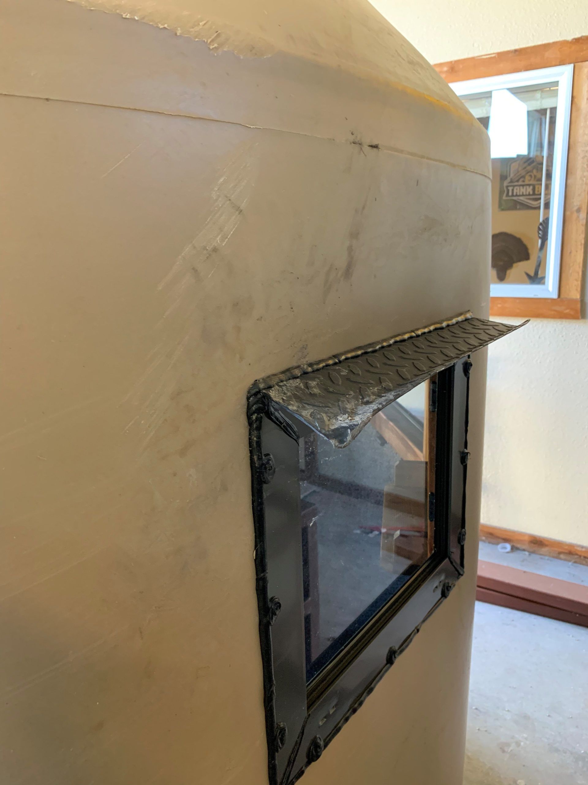 - Heavy duty diamond plate steel rain guards divert water to the left or right of each window.